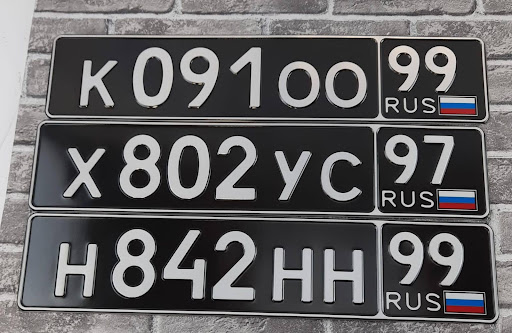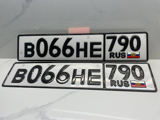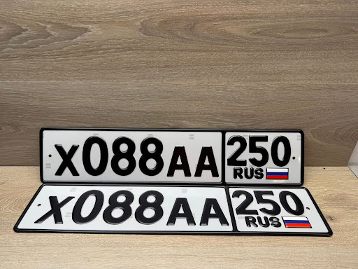 Также,по желанию возможно изготовление номеров в соответствии с требованиям ГОСТ, которые ранее выдавались в ГИБДД, такие как номера без флага с выдавленным RUS