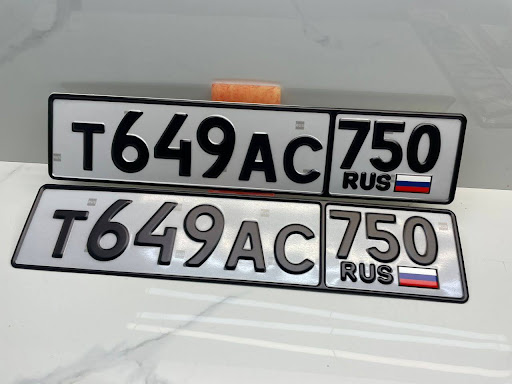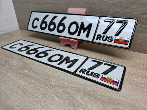 Для производства ГРЗ используется качественная алюминиевая пластина стандартной толщины. Номера покрыты светоотражающей пленкой и имеют защитные голограммы RUS